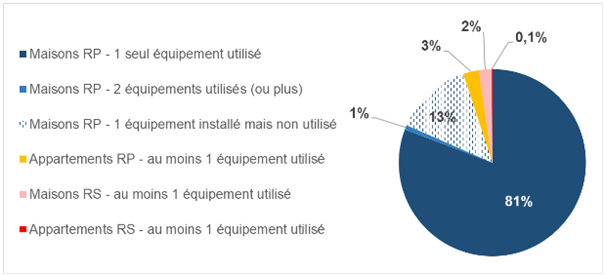 Il ressort logiquement des données disponibles que le chauffage domestique au bois se concentre très majoritairement dans des résidences principales de type maison individuelle.